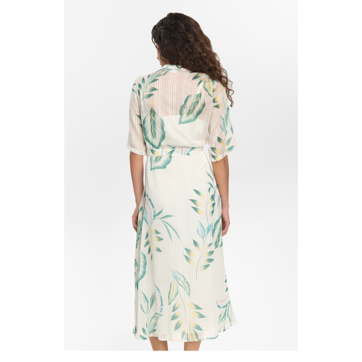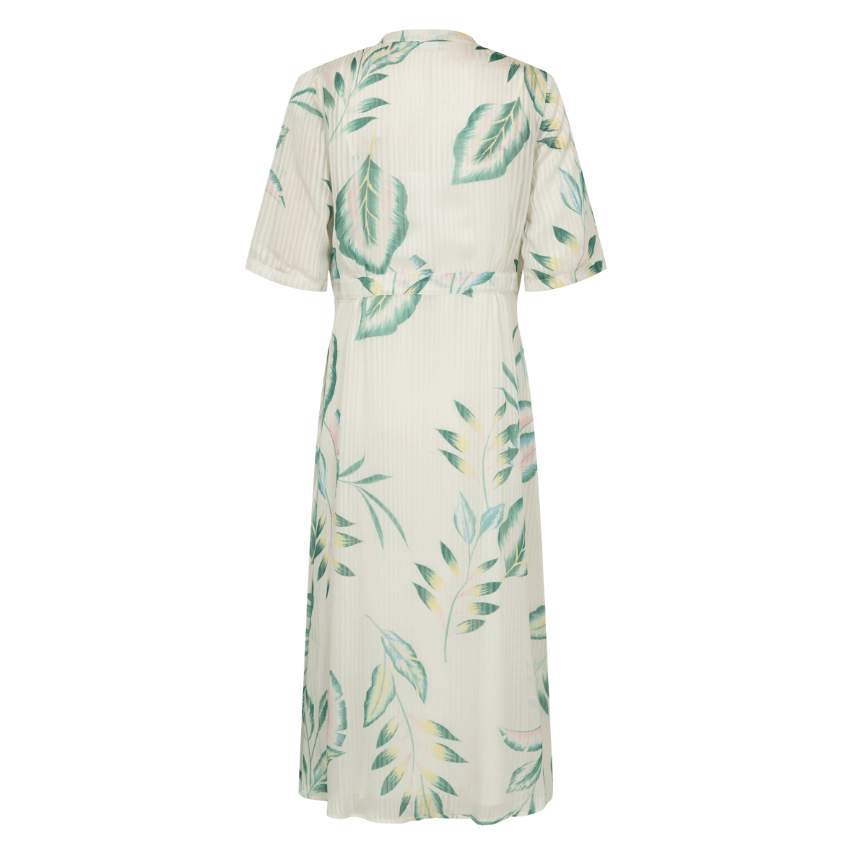 Stylenavn: NuKyndall SS Dress Stylenummer: 705461 Farve: Pristine 9501 Materiale: 100% viskose, 100% polyester Vaskeanvisning: Alm. vask maks 30° Størrelsessvarende: Ja
