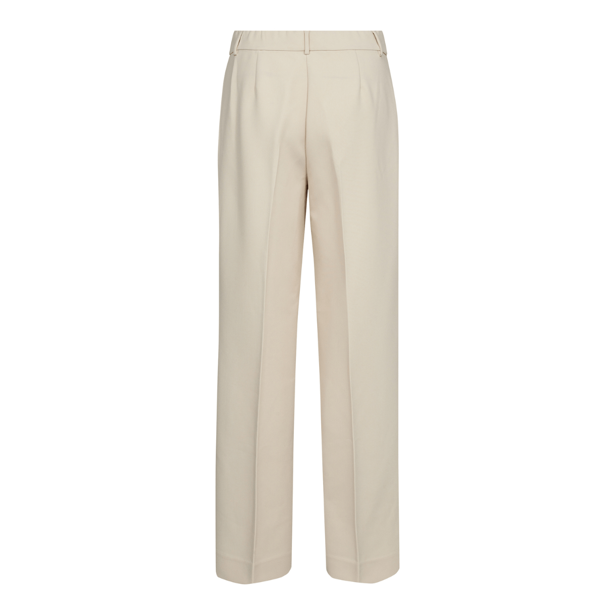 Bukserne har lige ben med vidde og pressefold.