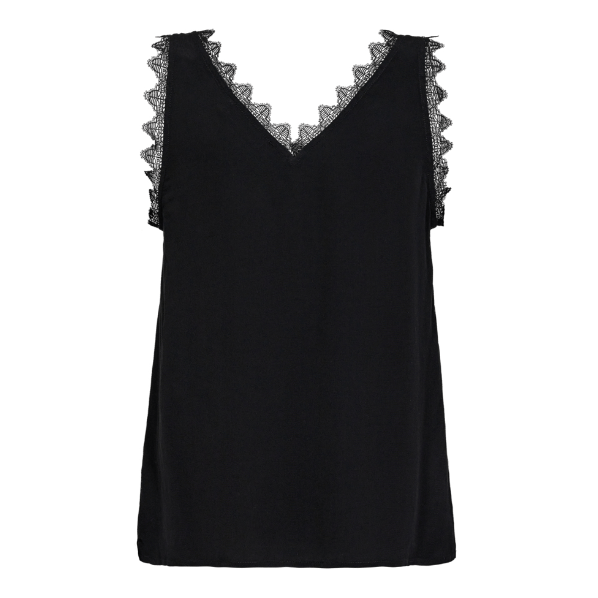 Stylenavn: PerinCC Lace Singlet Stylenummer: 35833 Farve: Black 96 Materiale: 100% viskose Vaskeanvisning: Skånevask max 30º Størrelsessvarende: Ja