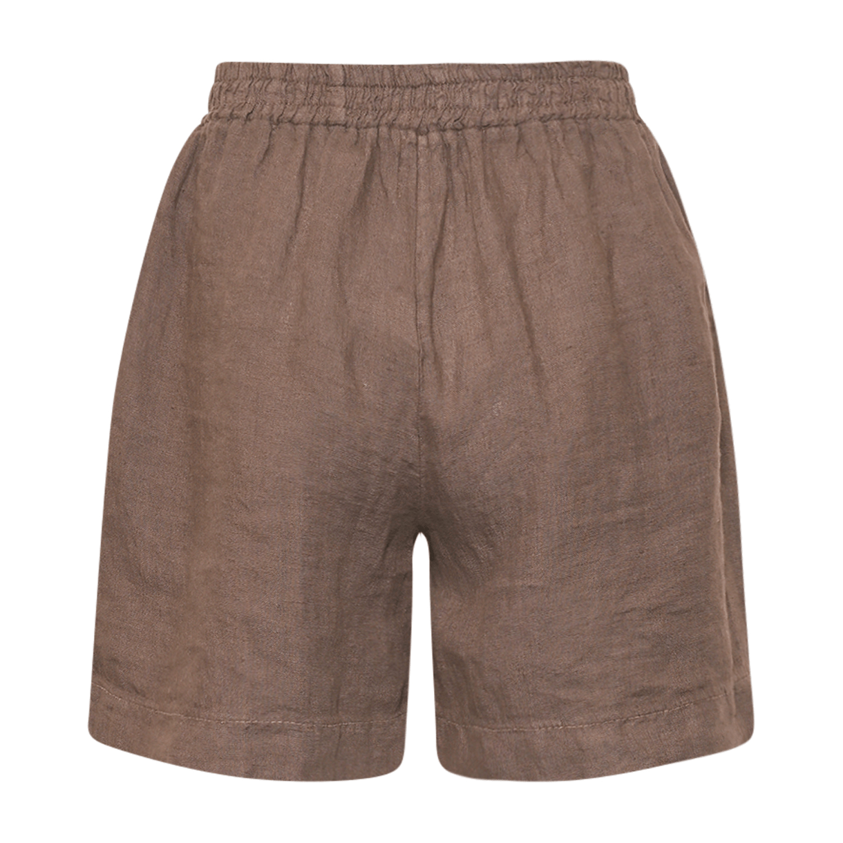 Stylenavn: Tracy Linen Shorts Stylenummer: 12470002 Farve: Mocca Materiale: 100% hør Vaskeanvisning: Skånevask maks 30 grader Størrelsessvarende: Ja
