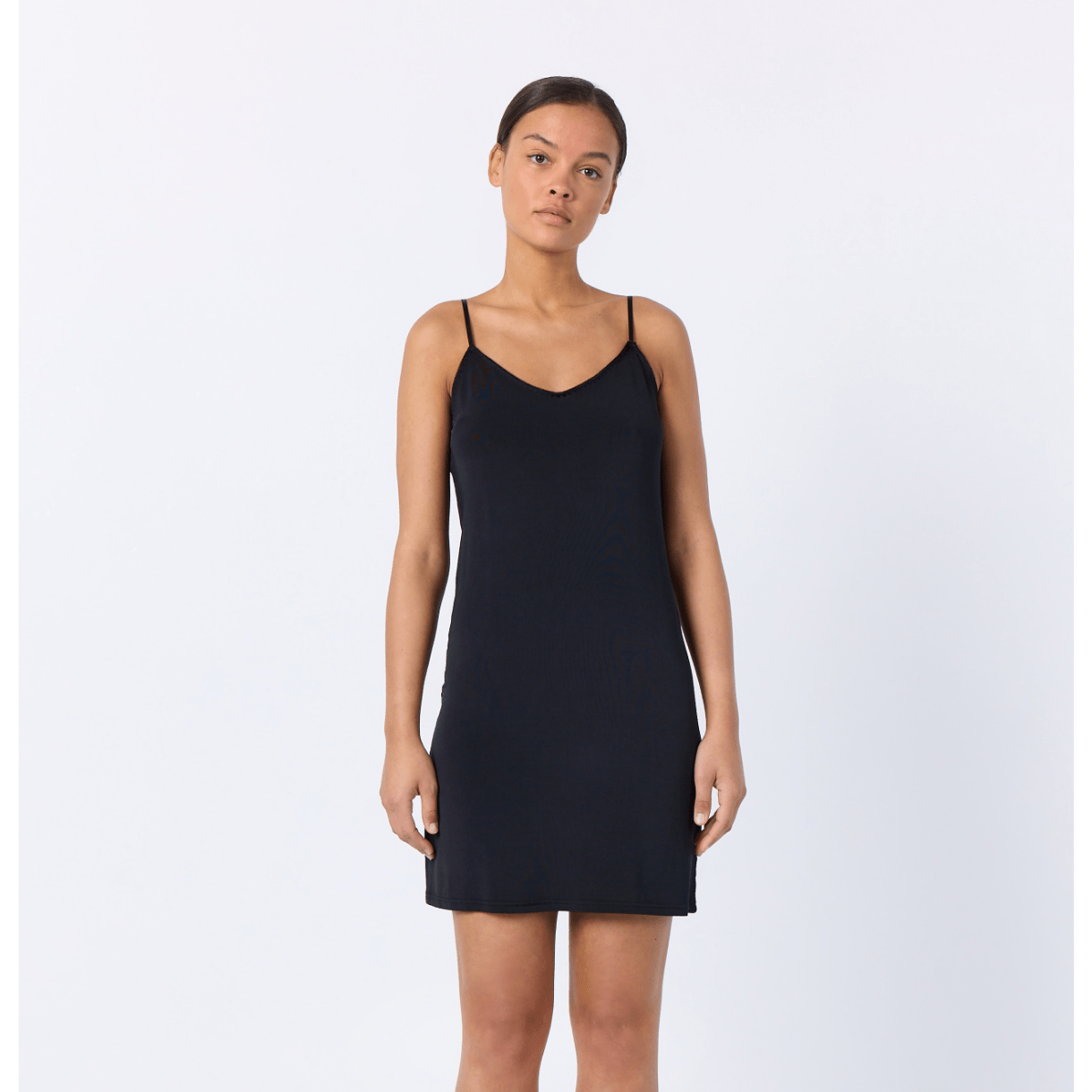 Simpel underkjole i viskose med tynde, justerbare stropper og blød V-udskæring.