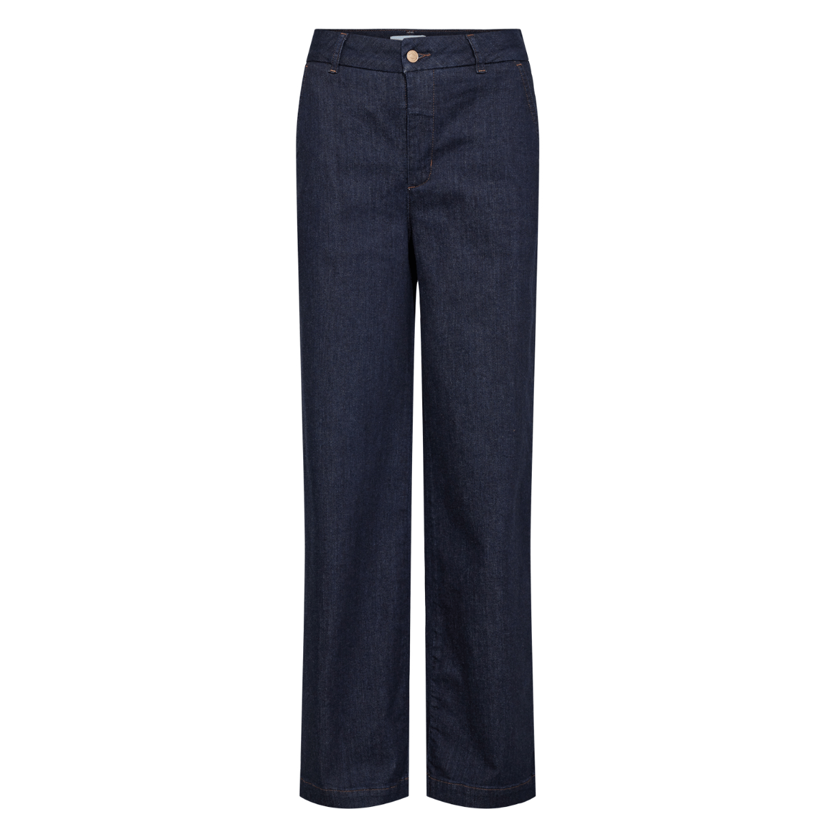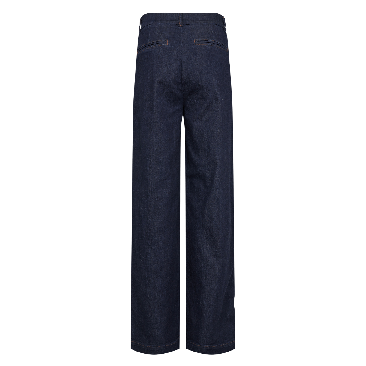 Stylenavn: NuAmber Pants Stylenummer: 705800 Farve: Dark Blue Denim 3012 Materiale: 98% bomuld, 2% elastan Vaskeanvisning: Skånevask max 30º Størrelsessvarende: Ja