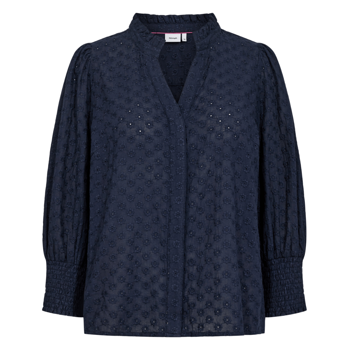 Stylenavn: NuSalvie Shirt Stylenummer: 705884 Farve: Dark Sapphire 3038 Materiale: 100% bomuld Vaskeanvisning: Skånevask max 30º