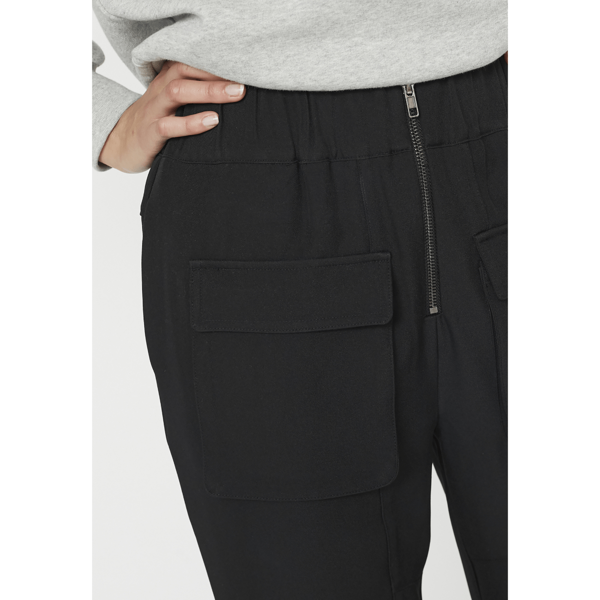 Stylenavn: LunaCC Pocket Pant Stylenummer: 31614 Farve: Black 96 Materiale: 95% polyester, 5% elastan Vaskeanvisning: Skånevask max 30º