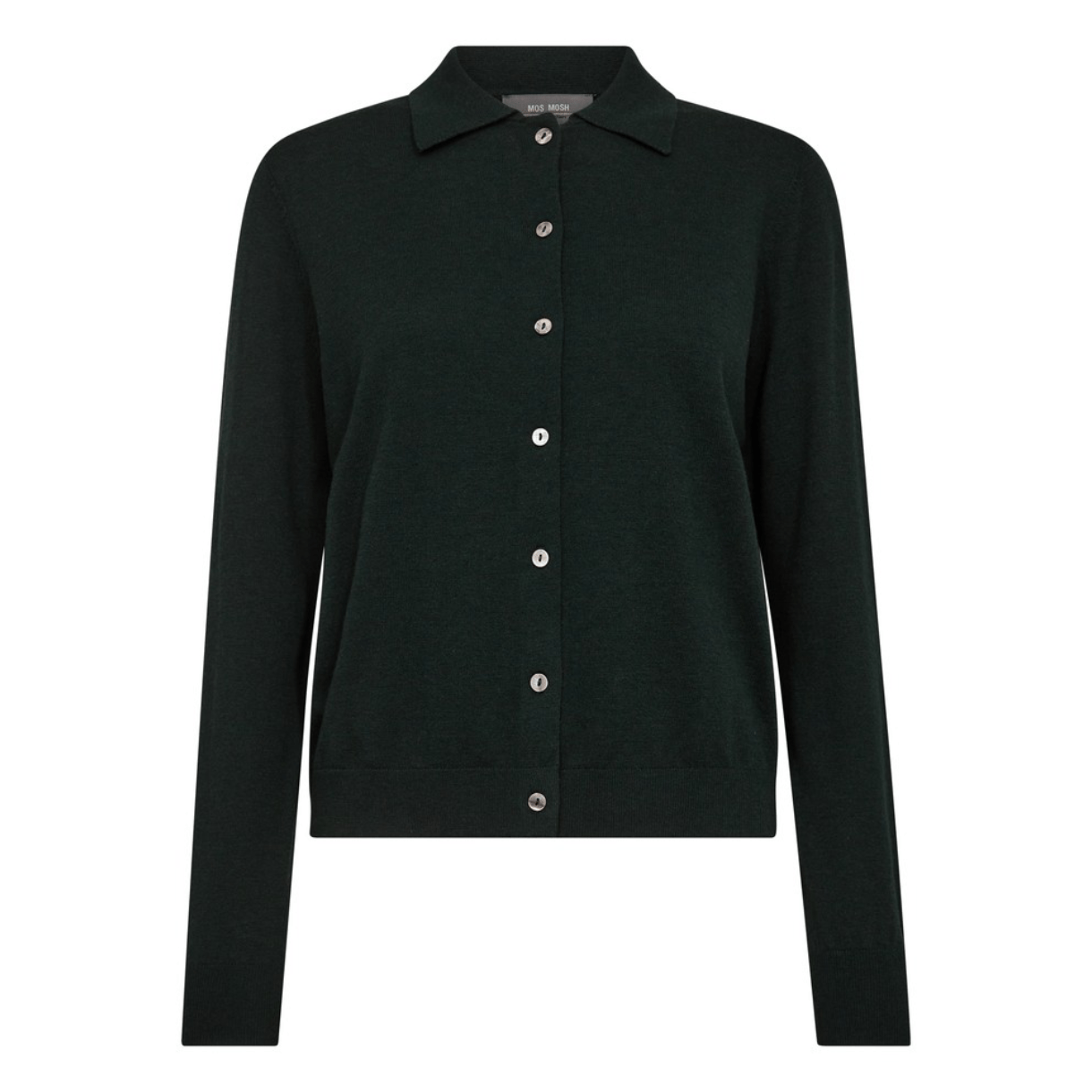 Lækker tynd strik med lange ærmer, krave og knaplukning.