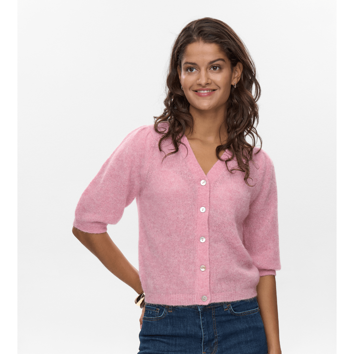 Cardigan med 3/4 lange, let volumniøse ærmer, V-hals og knaplukning.