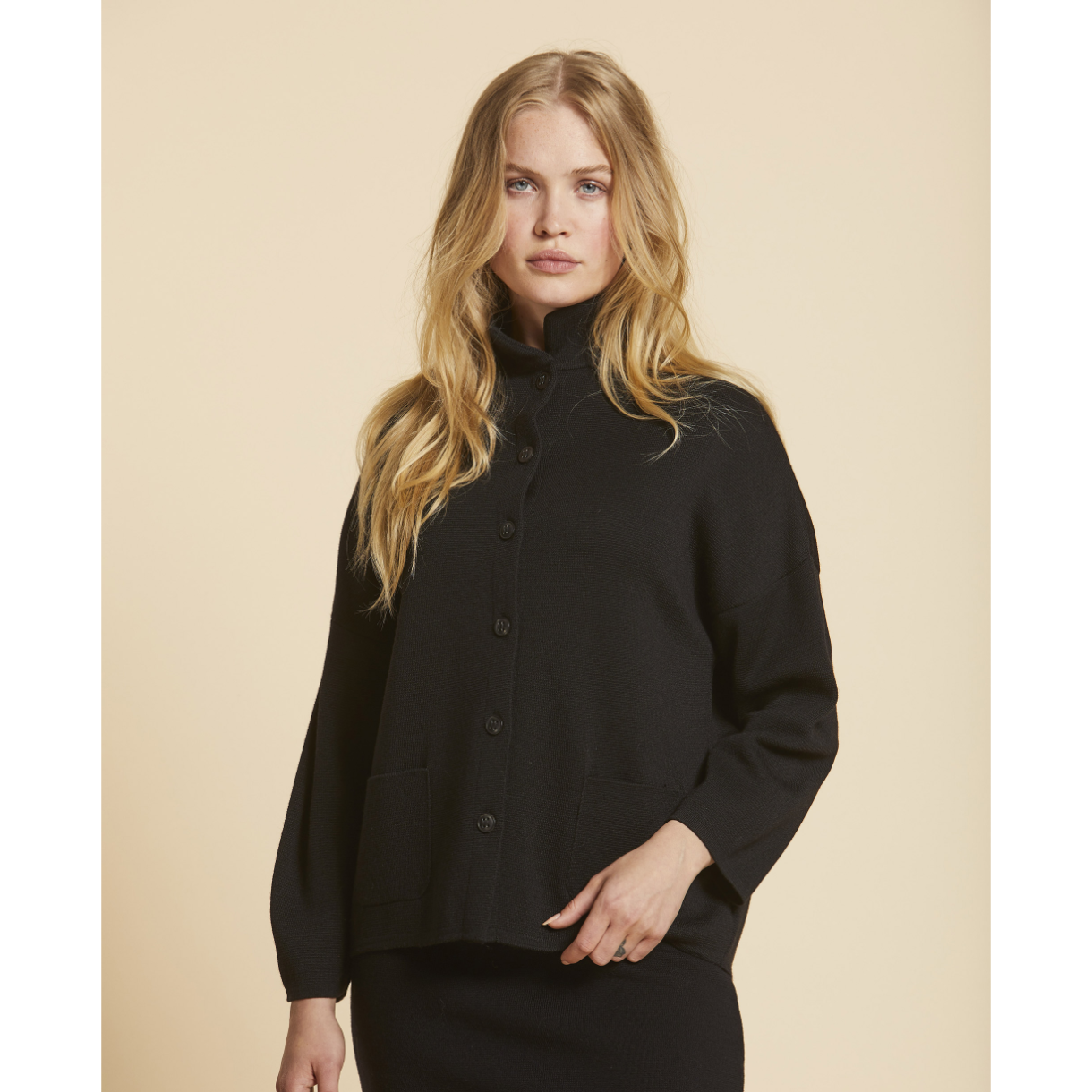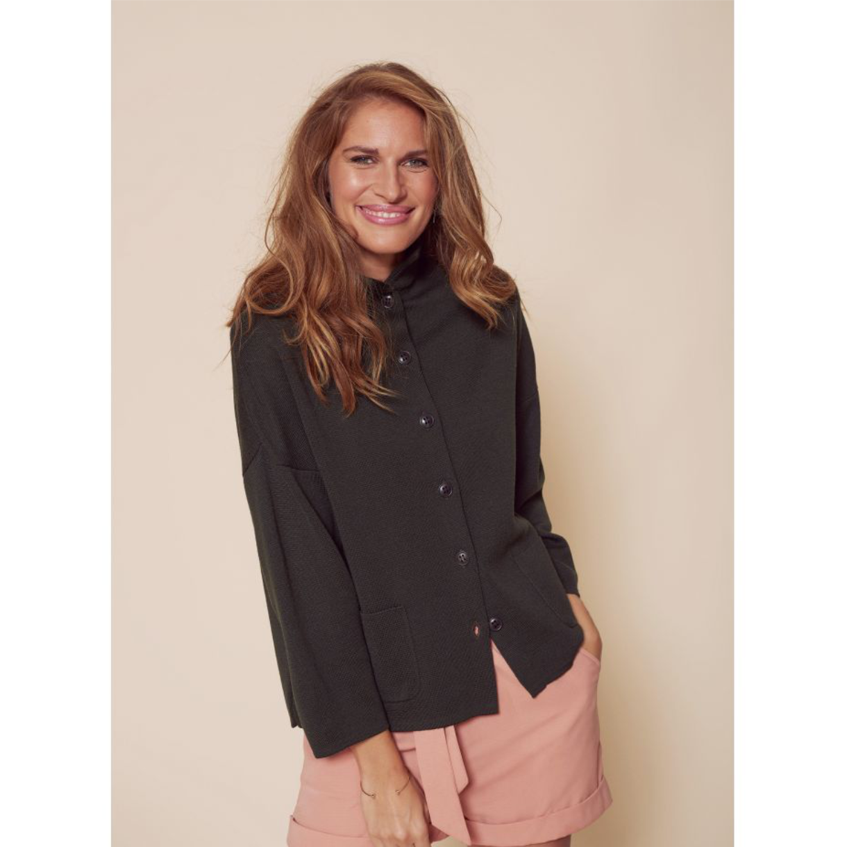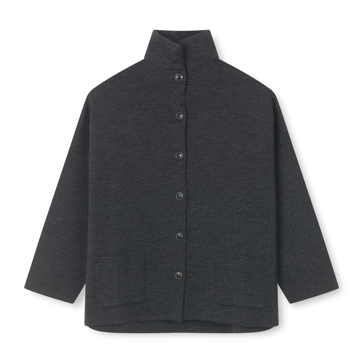 Strikken her er lidt en blanding mellem cardigan og en jakke.