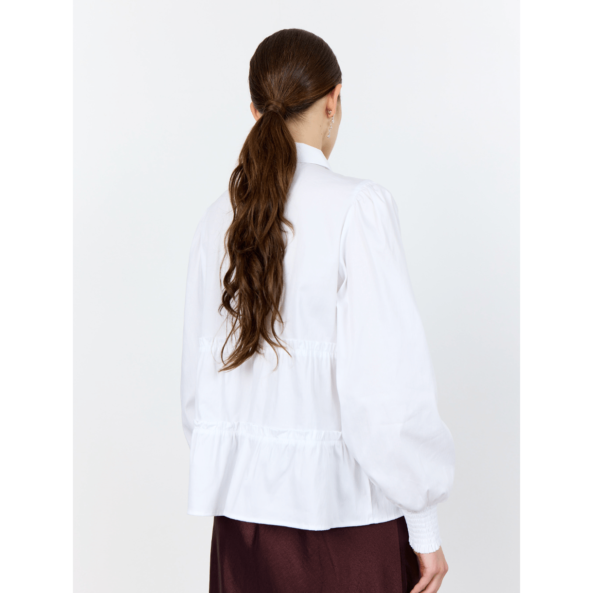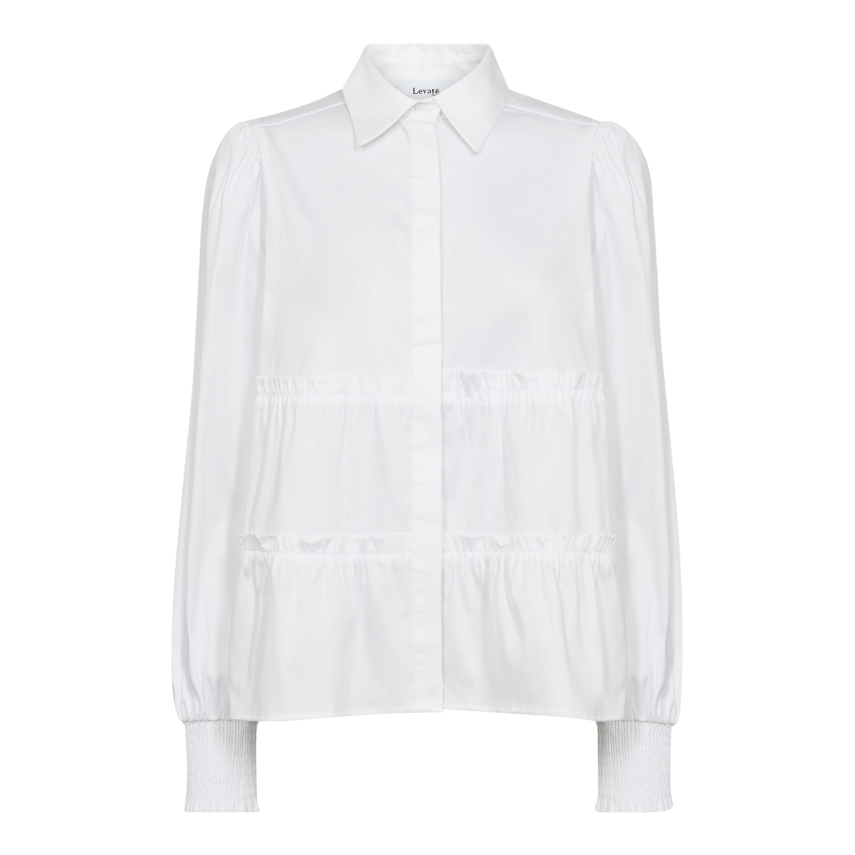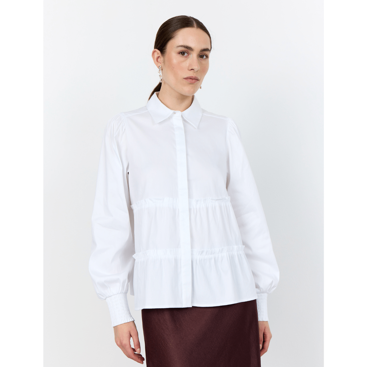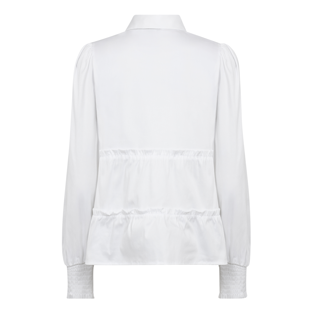 Fine rynkede flæsedetaljer, der giver lidt kant og femininitet til skjorten.