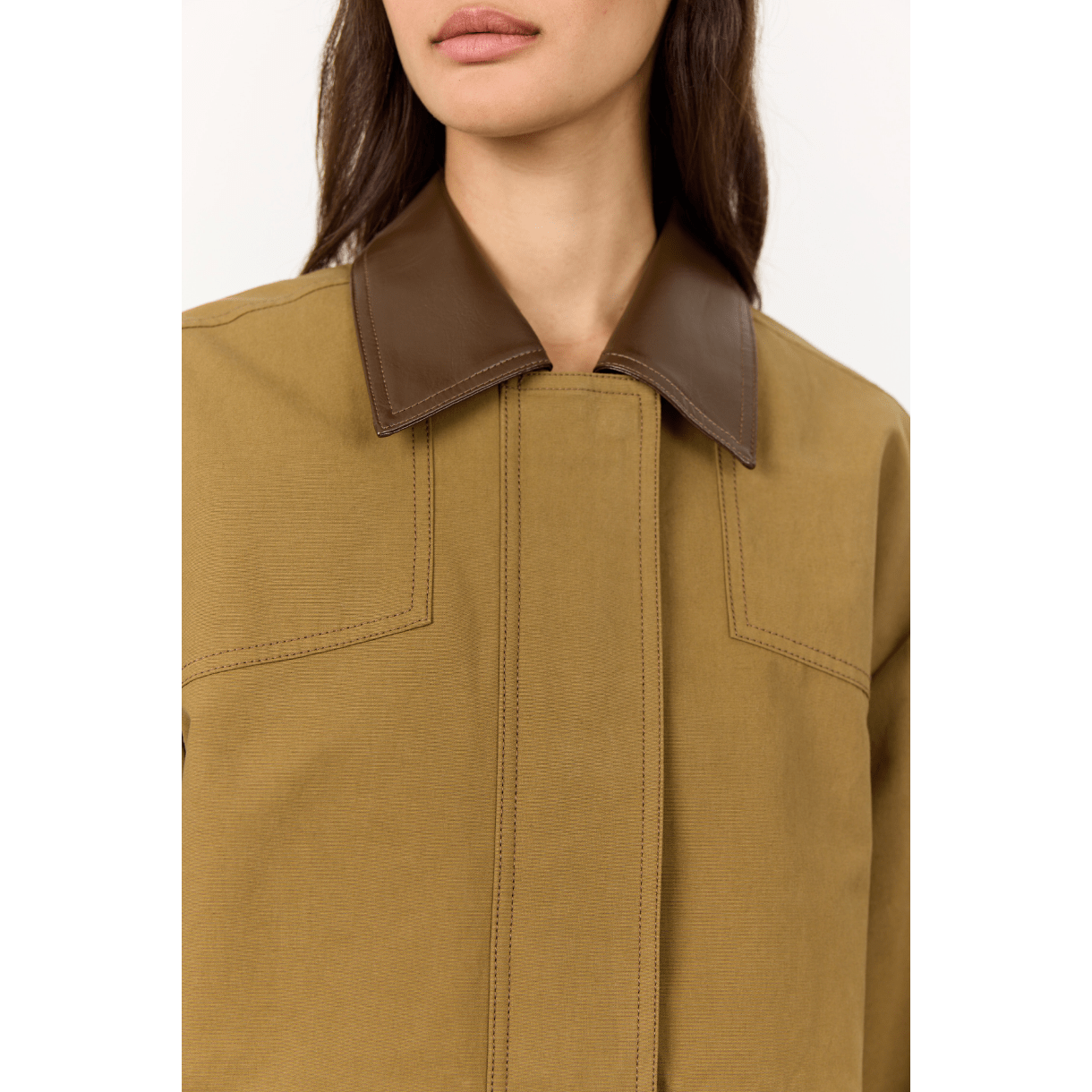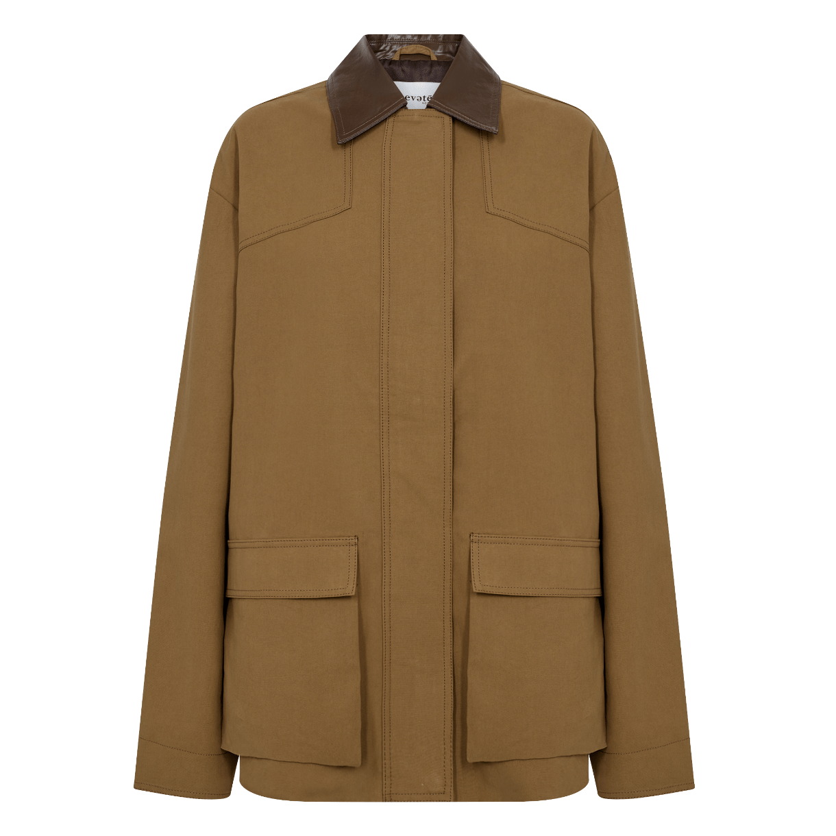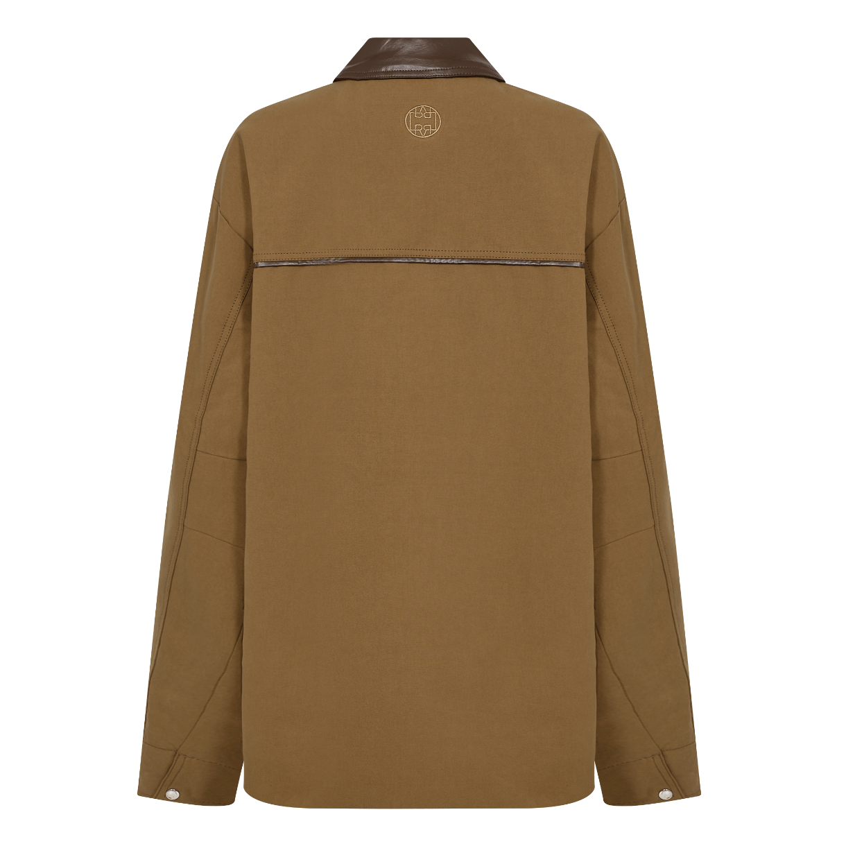 Meget klassisk, stilfuld bomuldsjakke med læder krave og oversize pasform.