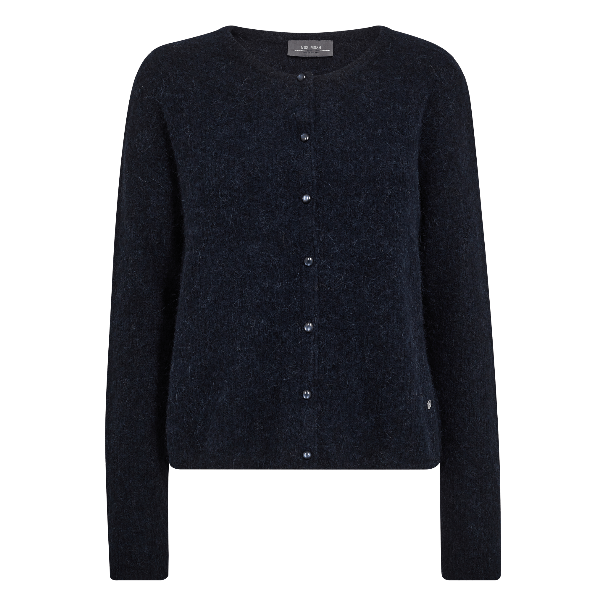 Stylenavn: MMAlmine Knit Cardigan Stylenummer: 158680 Farve: Salute Navy 468 Materiale: 33% uld, 33% alpaka, 29% polyamide, 5% elastan Vaskeanvisning: Håndvask Størrelsessvarende: Ja