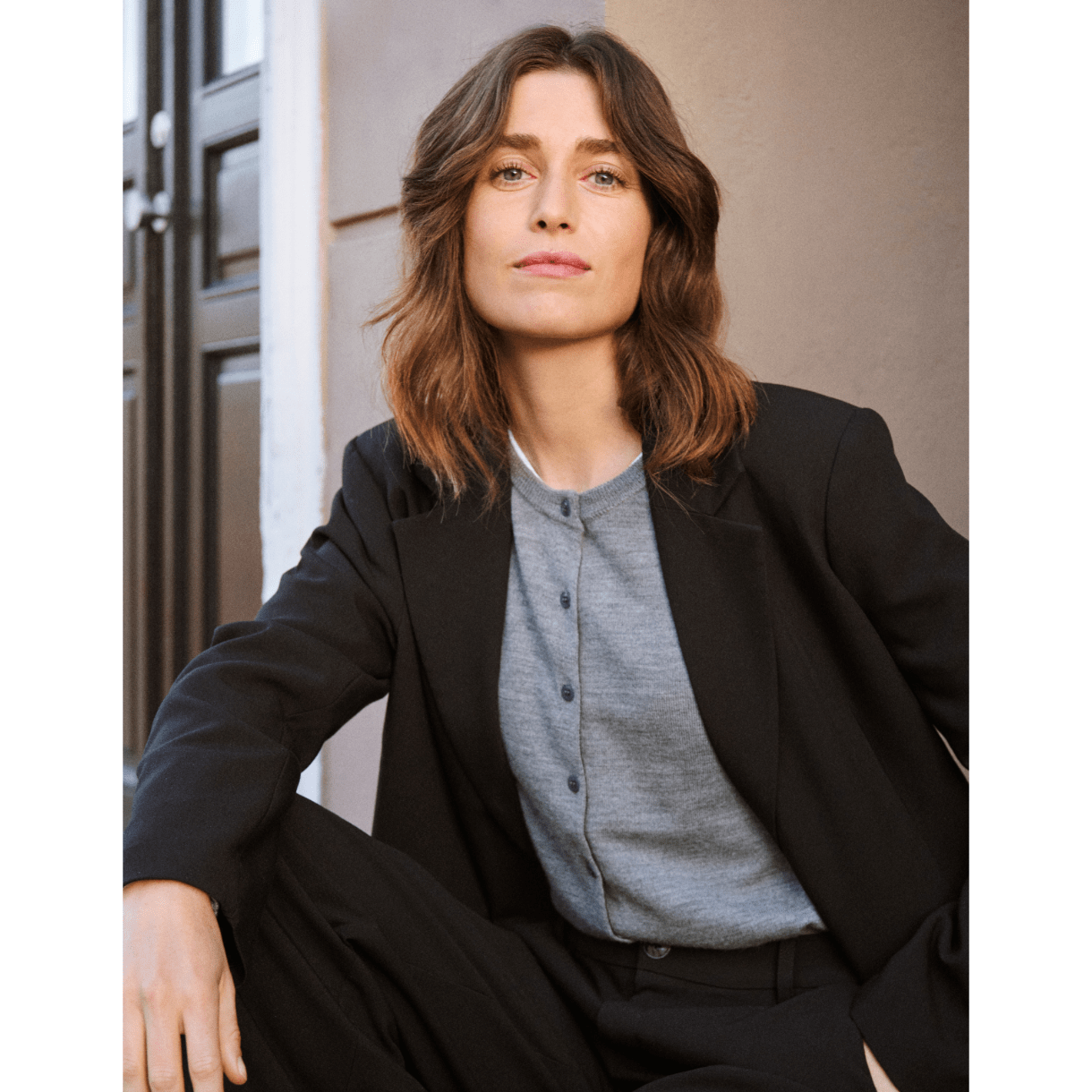 Alsidig cardigan der kan bruges til det hele. Lukket som bluse, åben til både kjoler og bukser.