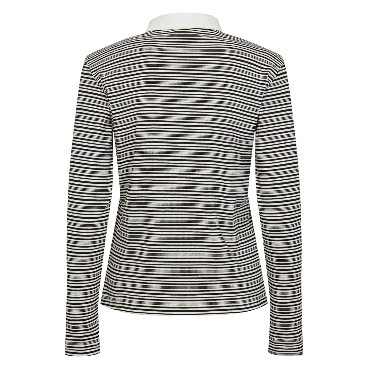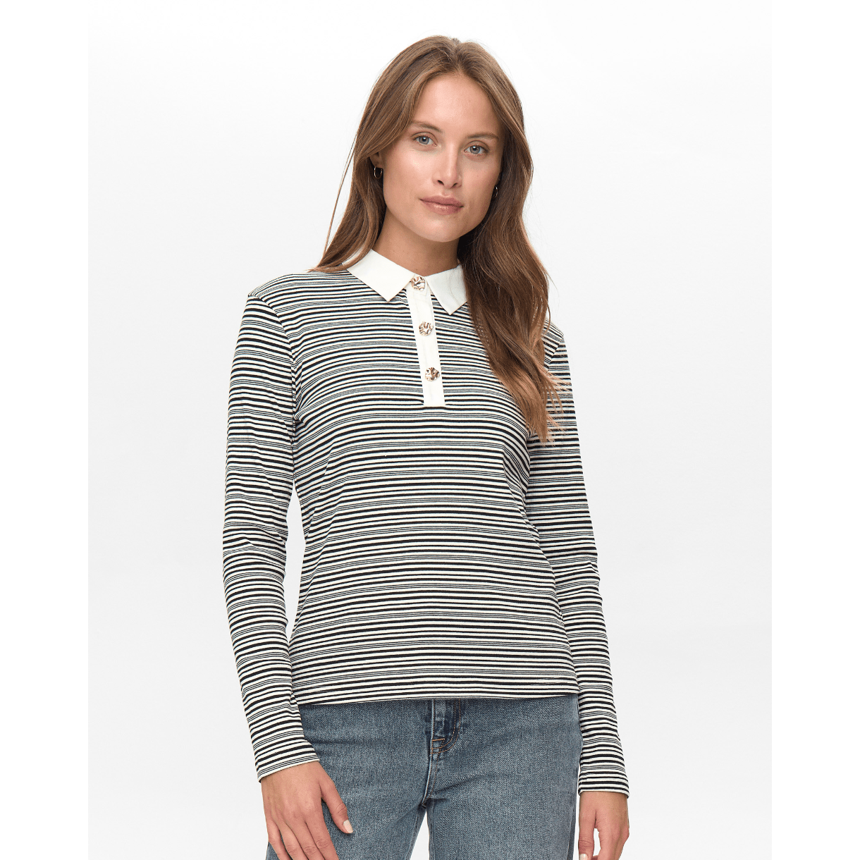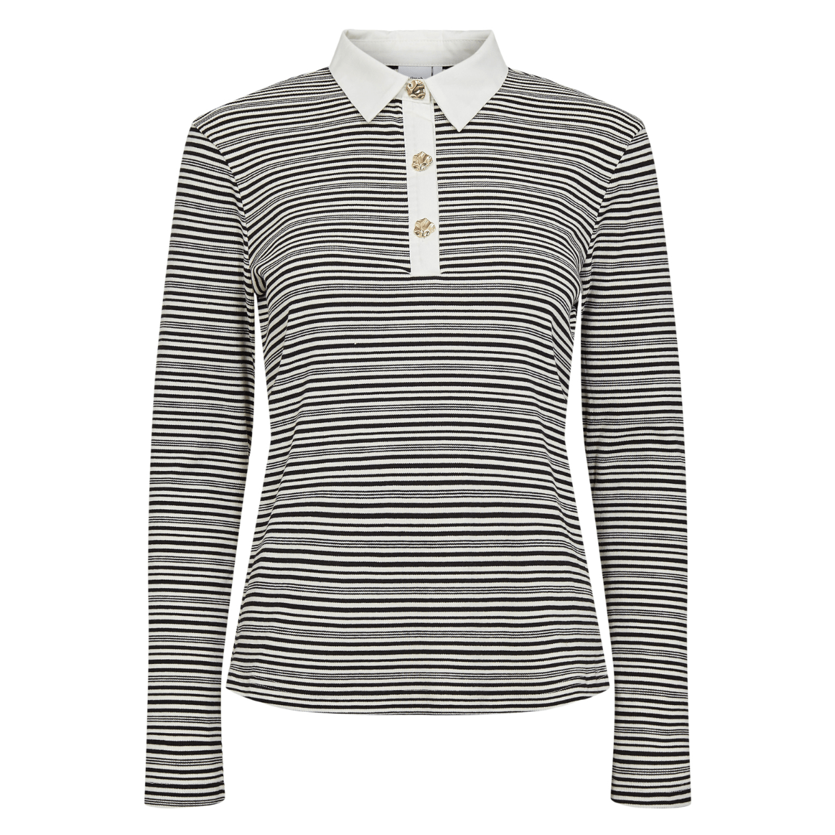 Poloen har lange ærmer, rund hals med krave og knapstolpe, og tætsiddende pasform.