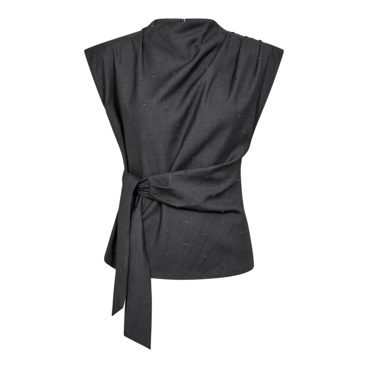 Stylenavn: SagaCC Pleat Top Stylenummer: 35760 Farve: Mid Grey 139 Materiale: 70% Polyester, 30% Viskose Vaskeanvisning: Må ikke vaskes. Rens anbefales. Pasform: Almindelig i størrelsen
