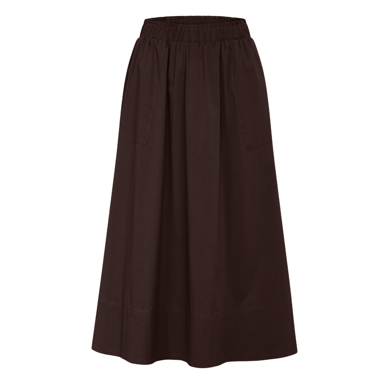 Stylenavn: Wilma Nederdel Stylenummer: LR1095 Farve: Dark brown Materiale: 70% Cotton / 27% Polyamide / 3% Elastane Vaskeanvisning: 30 gr.