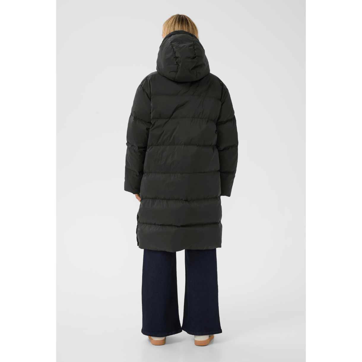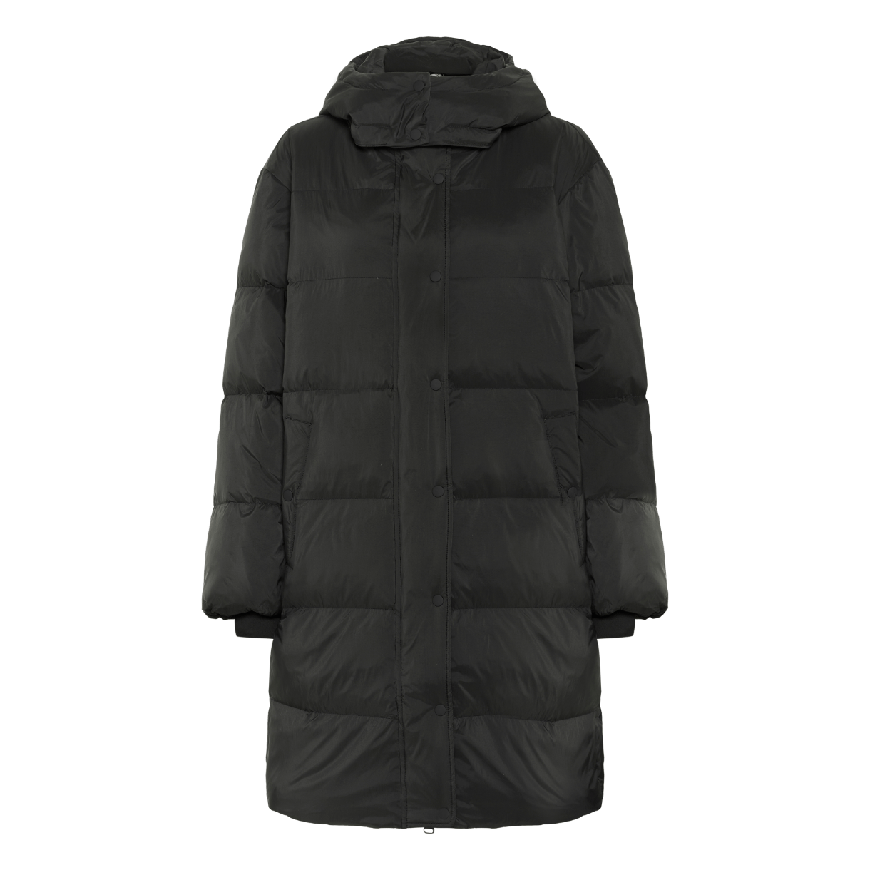 Den har tovejs-lynlås og trykknapper, diskrete lommer i siderne og skjult elastik ved håndleddet.