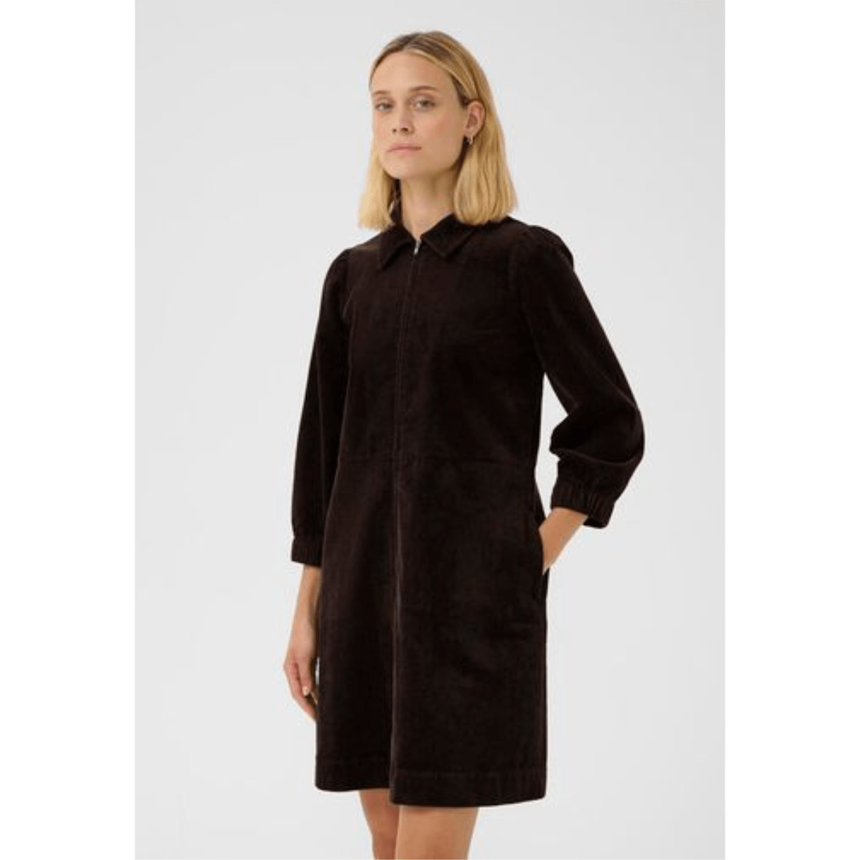 Skøn kjole i jernbanefløjl i smuk mørk brun fra Part Two.