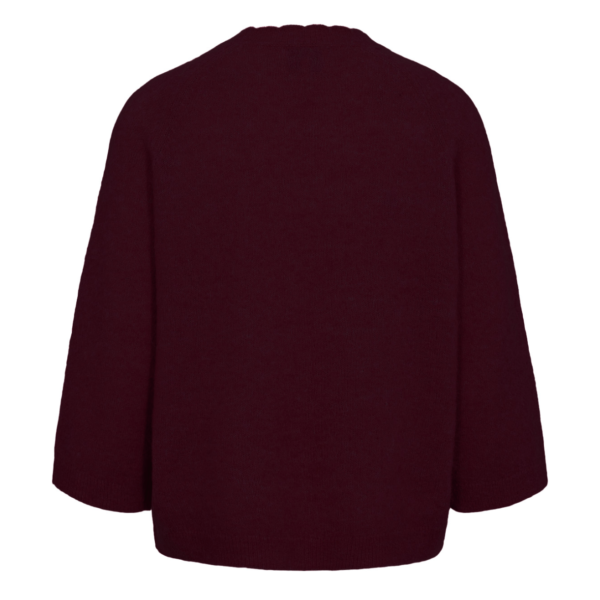 Strikken er meget klassisk med rund hals, 3/4 lange ærmer med vidde og en løs pasform.