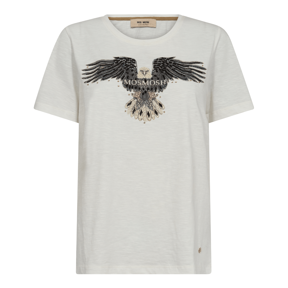 Stylenavn: MMKylah O-SS Deco Tee Stylenummer: 172630 Farve: Ecru 180 Materiale: 100% økologisk bomuld Vaskeanvisning: Almindelig vask 30º Størrelsessvarende: Ja