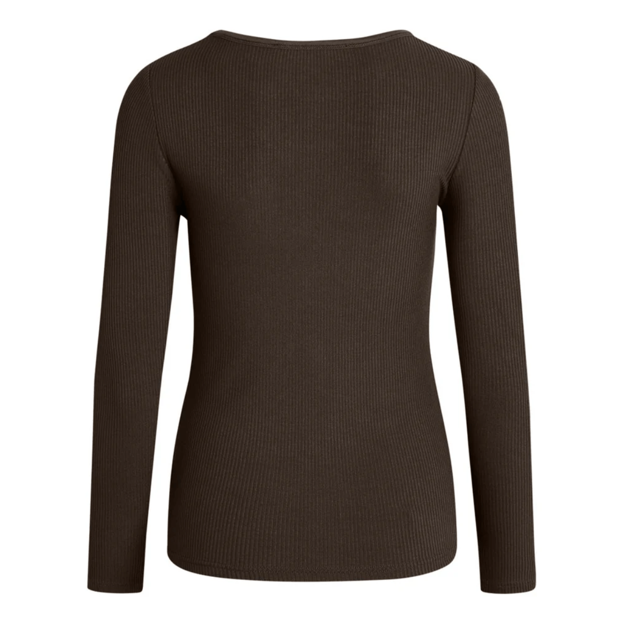 Stylenavn: Lisa L/S T-Shirt Stylenummer: LR1047 Farve: Dark Brown Materiale: 95% viskose, 5% elastan Vaskeanvisning: 30 gr. Størrelsessvarende: Ja