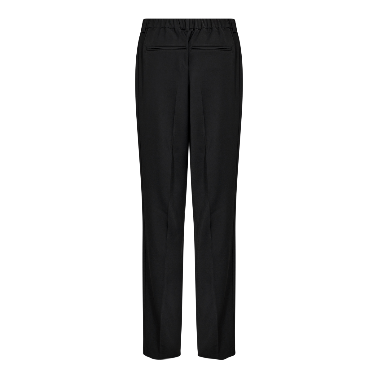 Bukserne er designet med løse, lige ben med pressefolder.