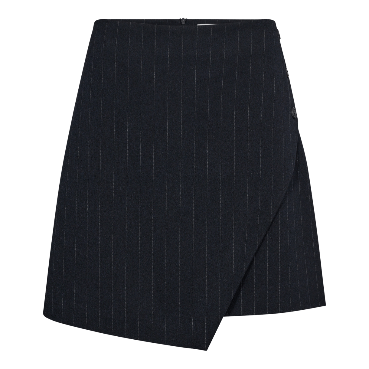 Nederdelen er lavet i A-shape med slå om effekt og knapper.