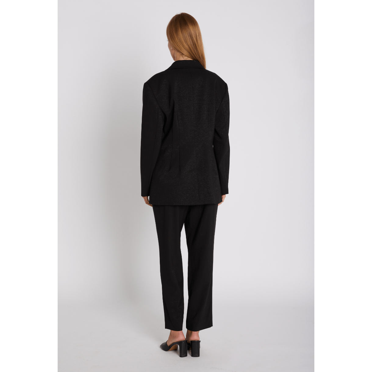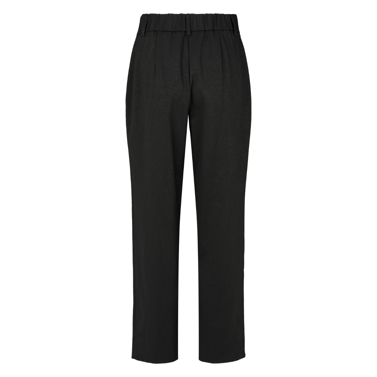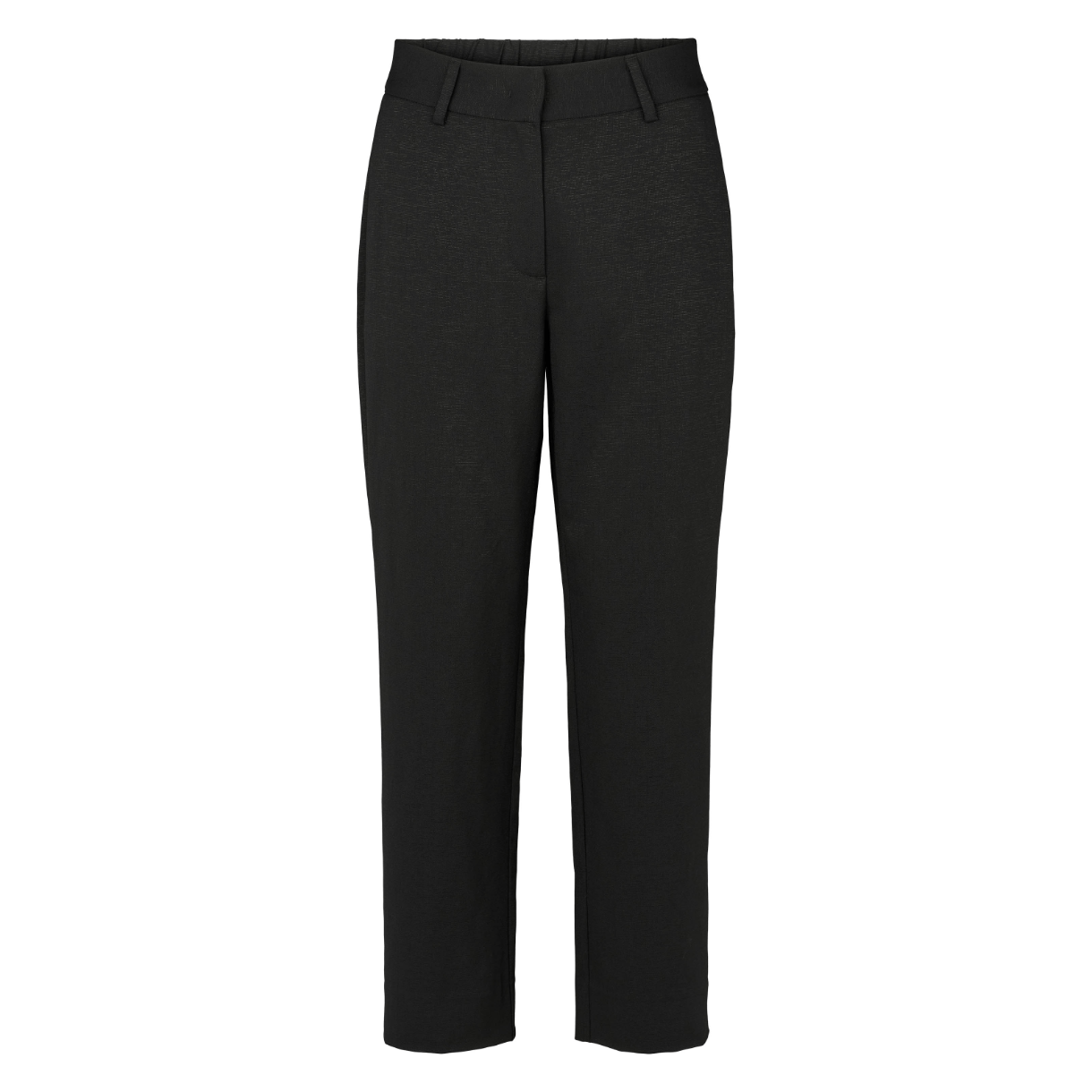 Bukserne har et elegant udtryk med fast linning foran og lige skåret ben.