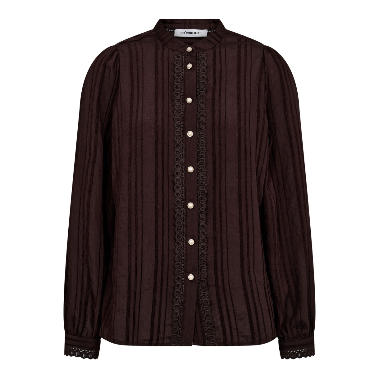Stylenavn: KesiCC Lace Blouse Stylenummer: 35960 Farve: Dark Brown 145 Materiale: 85% viskose, 15% polyamid Vaskeanvisning: Skånevask max 40°
