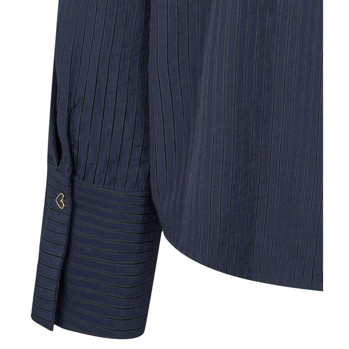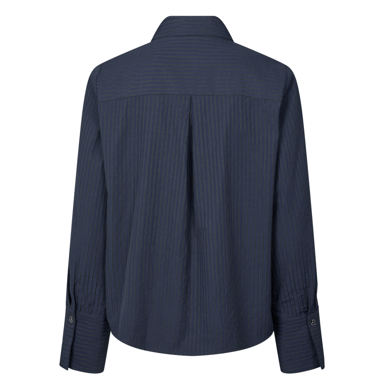 Kraven og manchetterne lukkes med en fin hjerteformet knap.