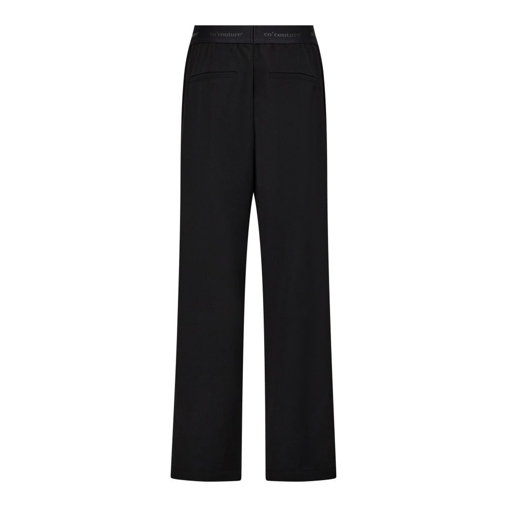 Cool sorte bukser fra Co' Couture med smuk velour glimmer bånd ned af siderne. Amina Logo Shimmer Pant har sort elastikkant i taljen med logo skrift, lommer i siderne samt paspolerede lommer bagpå. Bukserne har et løst og behageligt fit, som er nem at style. En virkelig trendy style, der helt klart bliver et musthave i garderoben.