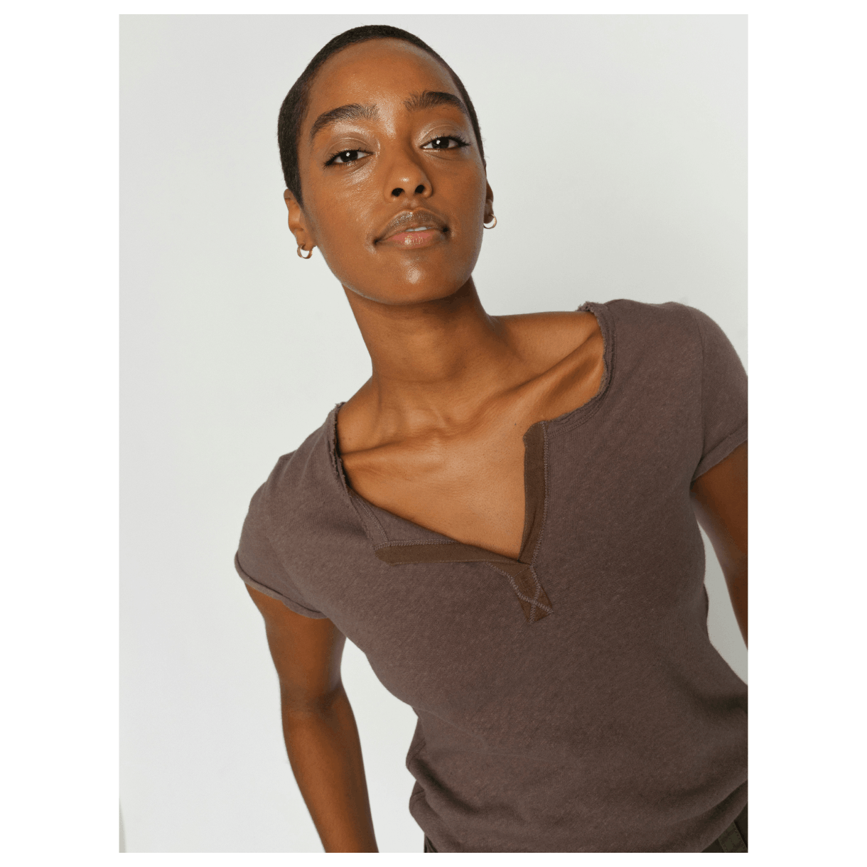 T-shirten har v-halsudskæring og god pasform i en skøn hør- og bomuldsblanding.