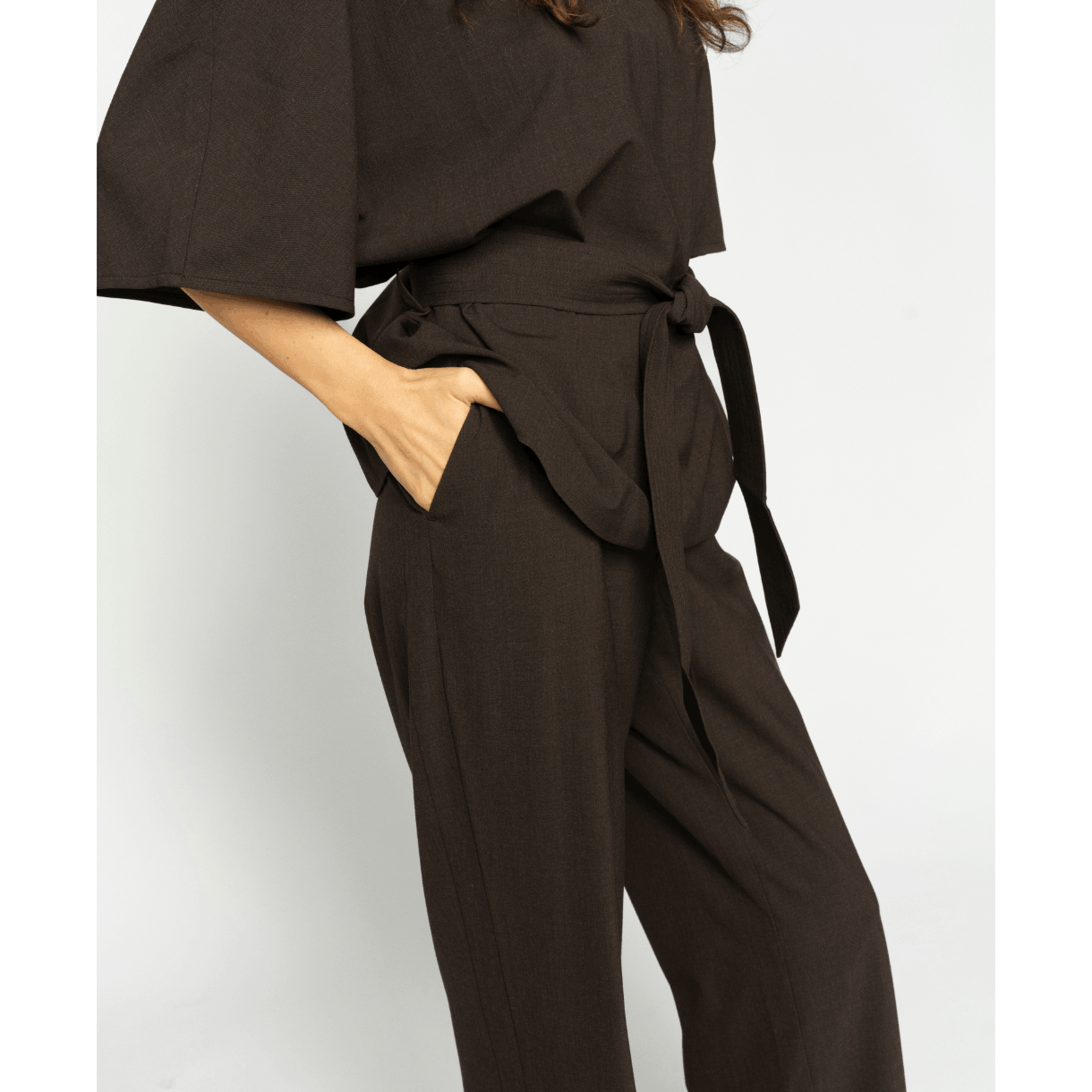 Bukserne har mellem/høj talje og elastik bagpå for skøn pasform.