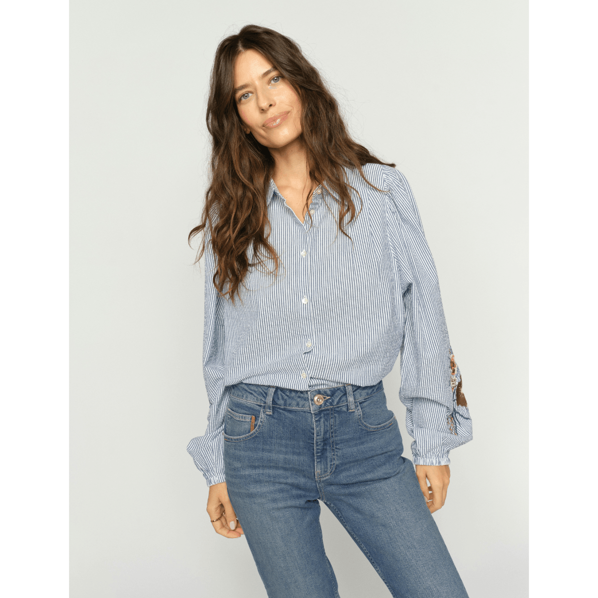 Smukt broderet blomster motiv på ærmer, der giver skjorten et unikt look.