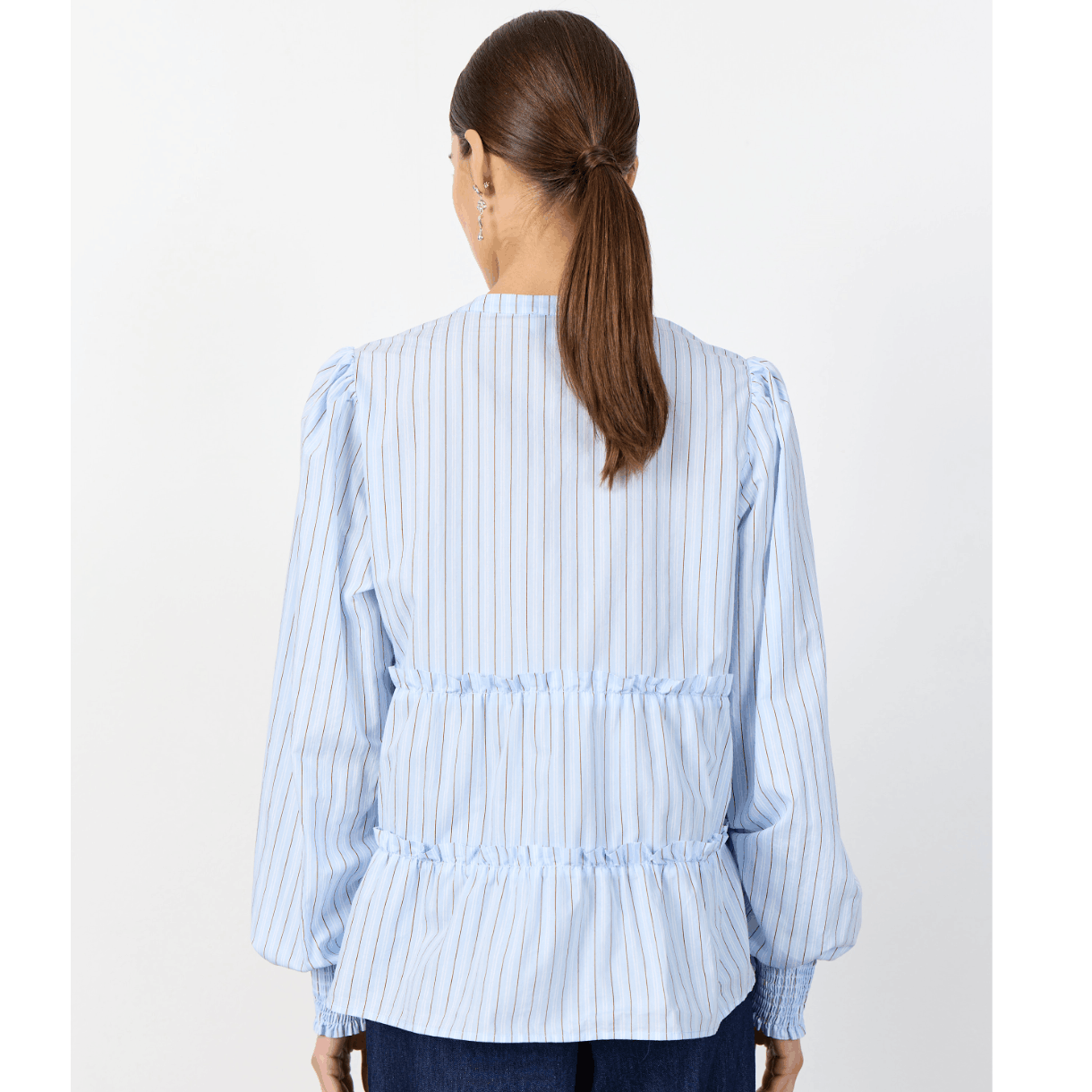 Det lette a-snit og de 2 flæser giver skjorten et feminint look.