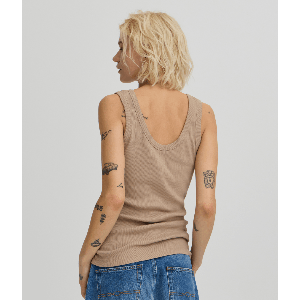 Stylenavn: BaAltobelli Tank Top Stylenummer: 50405330 Farve: Chinchilla 171109 Materiale: 95% økologisk bomuld, 5% elastan Vaskeanvisning: Alm. vask 40º Størrelsessvarende: Ja