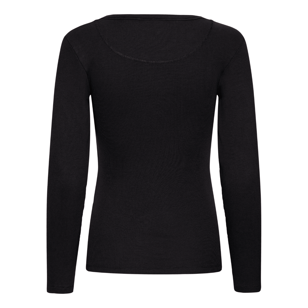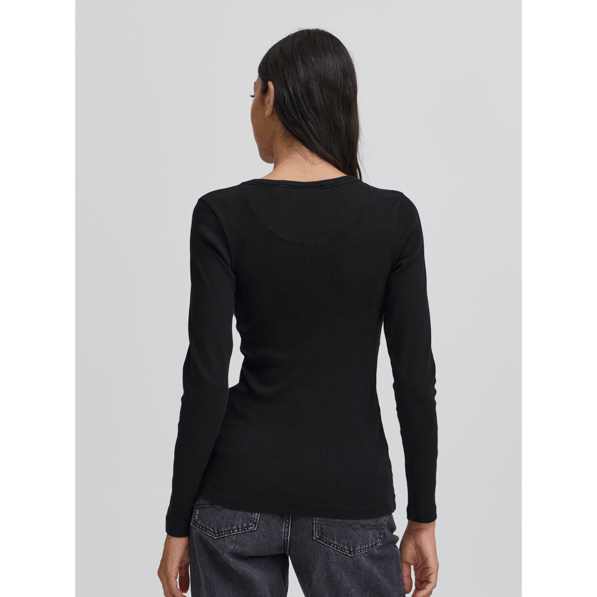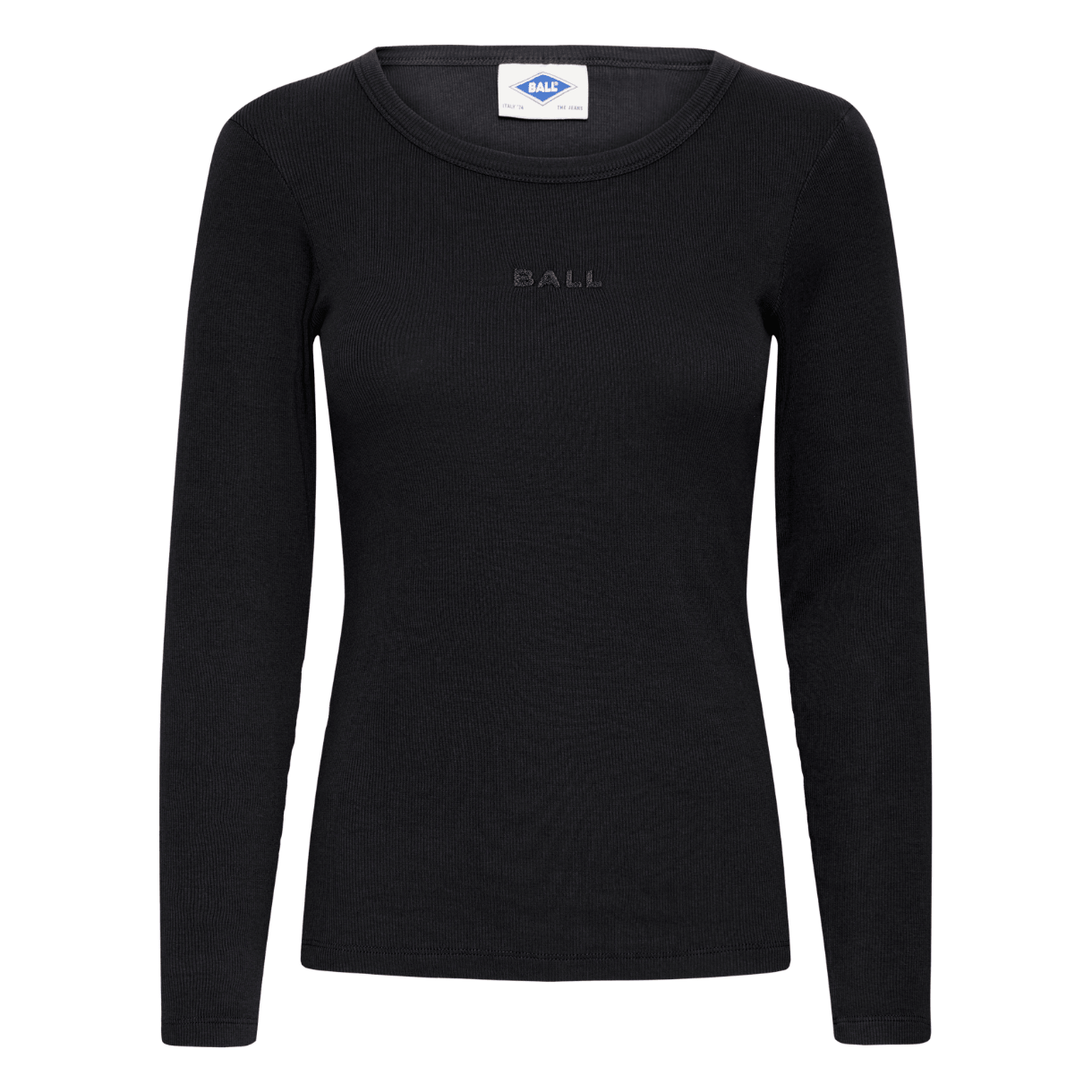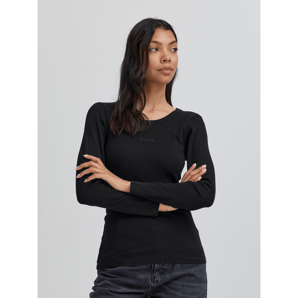Ribbet, langærmet basis top med rund halsudskæring og tætsiddende pasform.