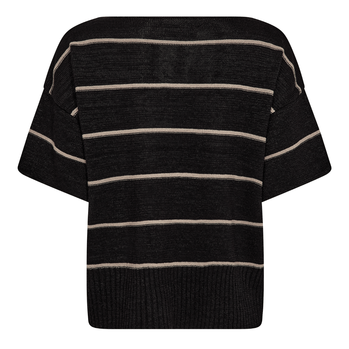 Stylenavn: MMArlen Paper SS Knit Stylenummer: 177760 Farve: Black 801 Materiale: 45% økologisk bomuld, 29% viskose, 26% papir Vaskeanvisning: Skånevask maks 30 grader Størrelsessvarende: Ja, vælg din sædvanlige str.