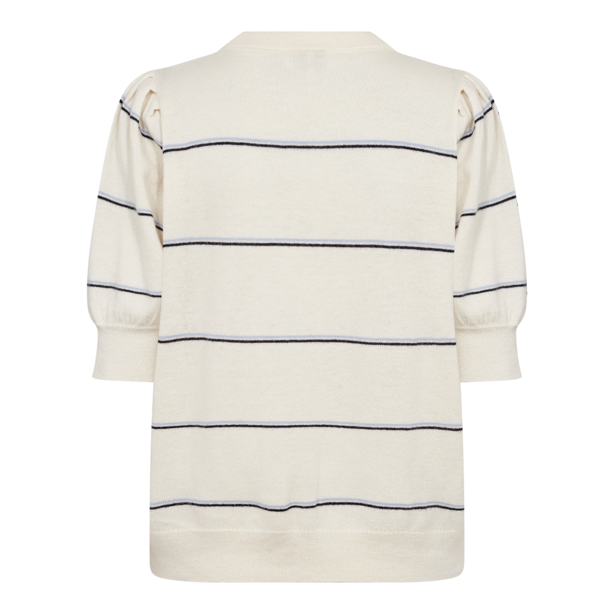 Ribstrik i kanten forneden samt nederst på ærmer.