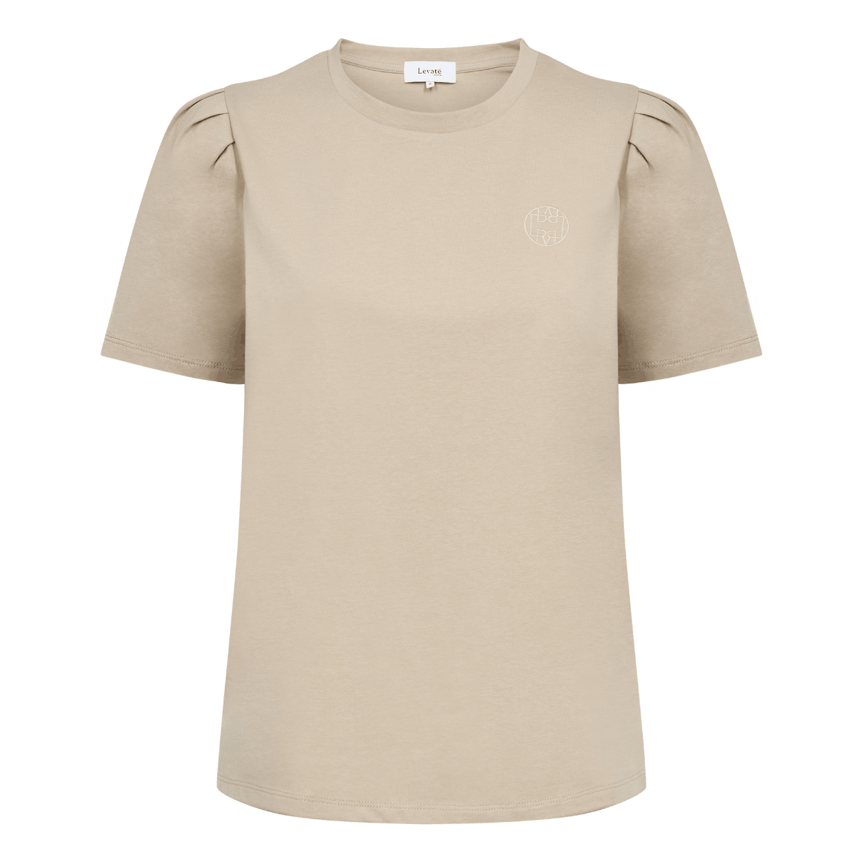 Den har rund hals, korte ærmer med let puf og regulær pasform.
