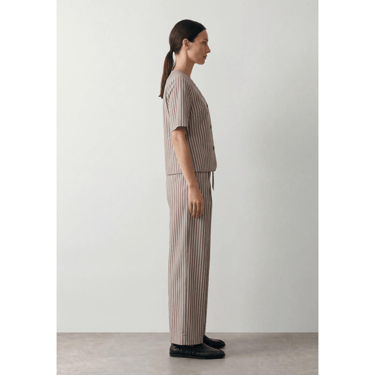 De har fast linning foran, elastik bagpå og så har de bæltestropper samt binde bånd.