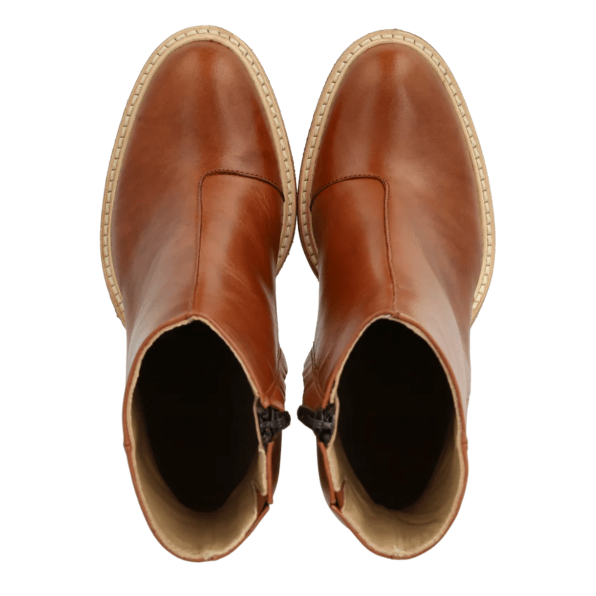 Stylenavn: Støvlet på Blokhæl Stylenummer: 7696-101-8691 Farve: Cognac 1838 Materiale: 100% skind. Sål af rågummi. Pasform: Normal fit.