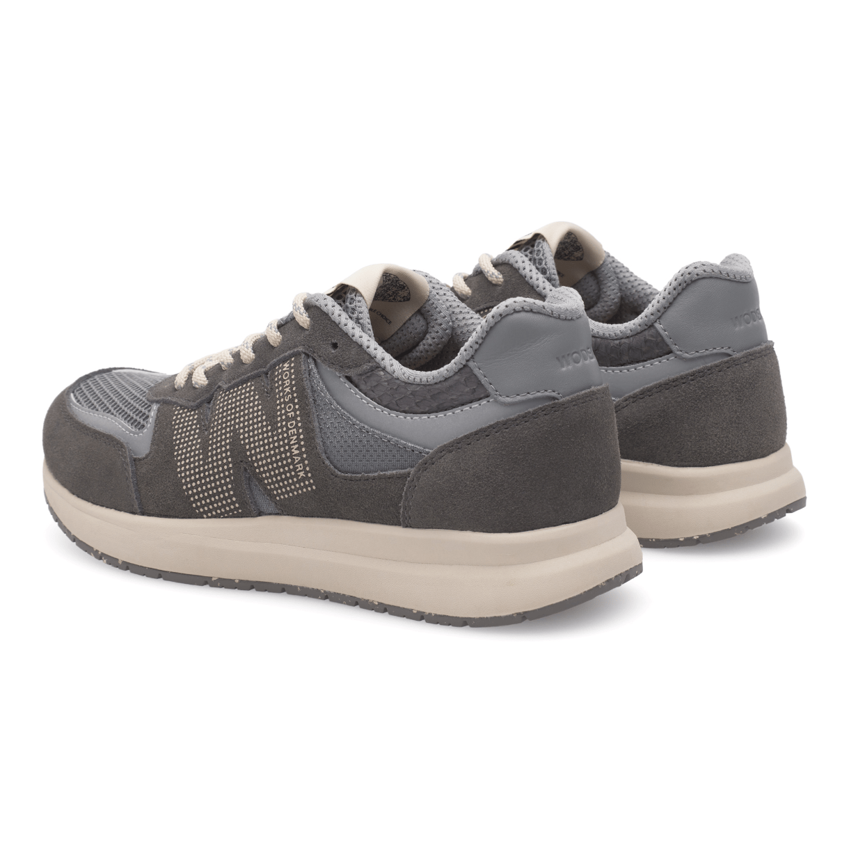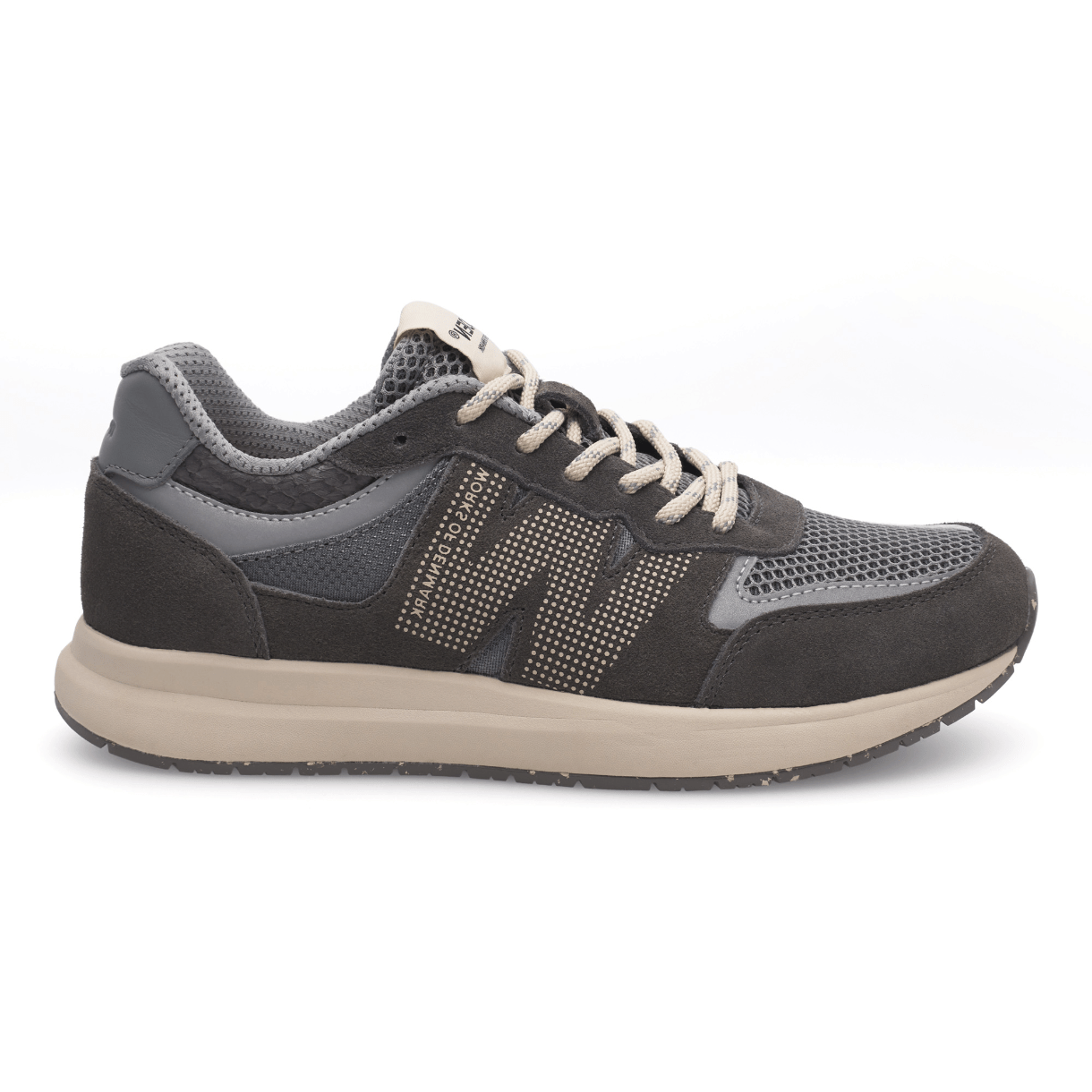 Rigmor er en sporty, moderne sneaker sammensat af forskellige materialer som tekstil, ruskind og fiskelæder.