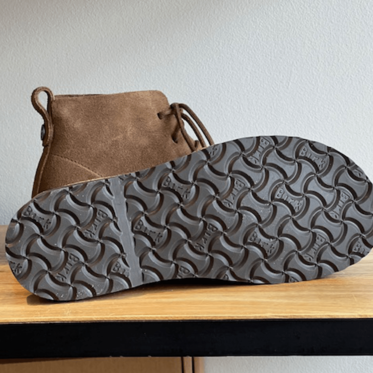 En klassisk snørrestøvle fra Birkenstock i en lækker brun ruskind, perfekt til efterårets nyeste styles.