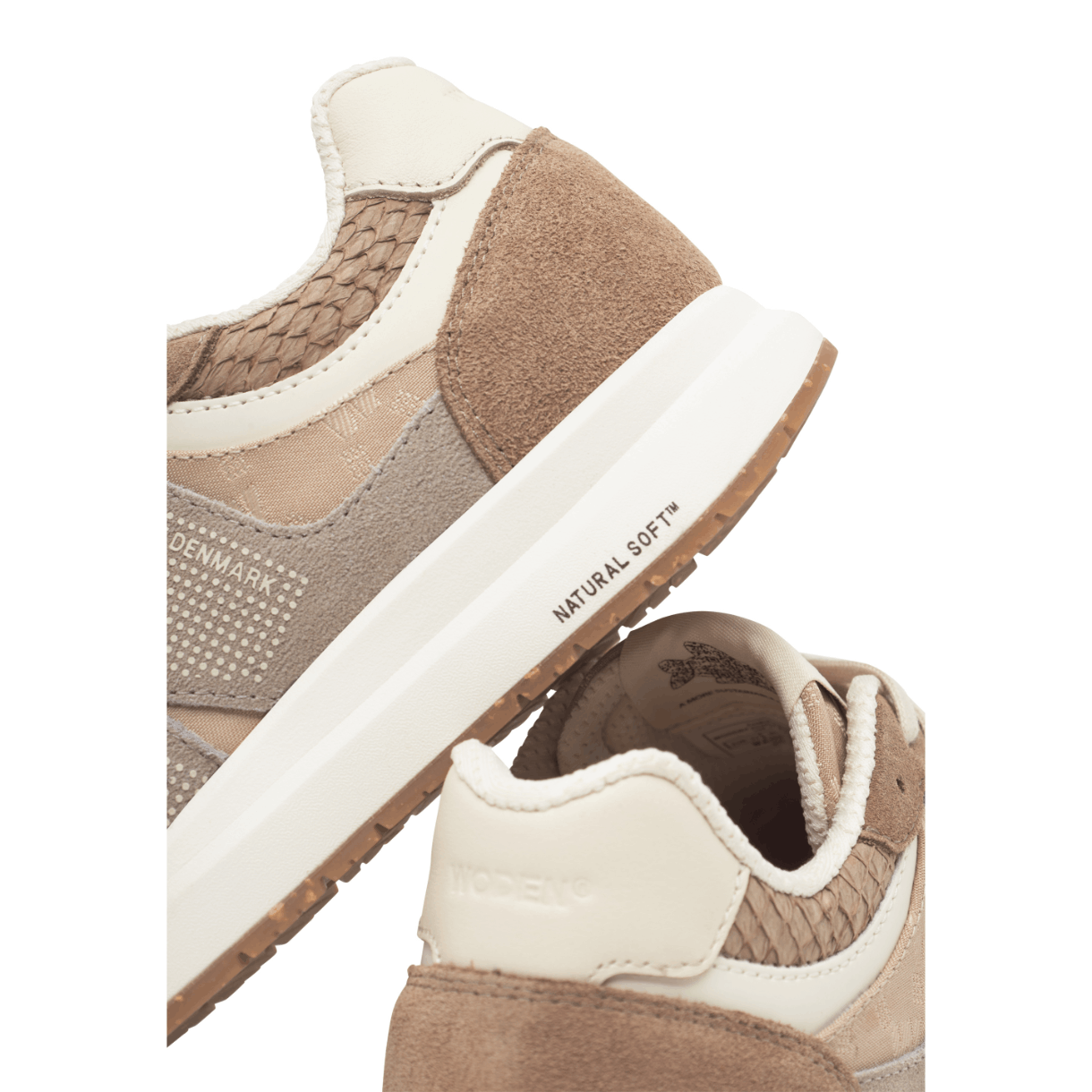 Rigmor er en sporty, moderne sneaker sammensat af forskellige materialer som tekstil, ruskind og fiskelæder.