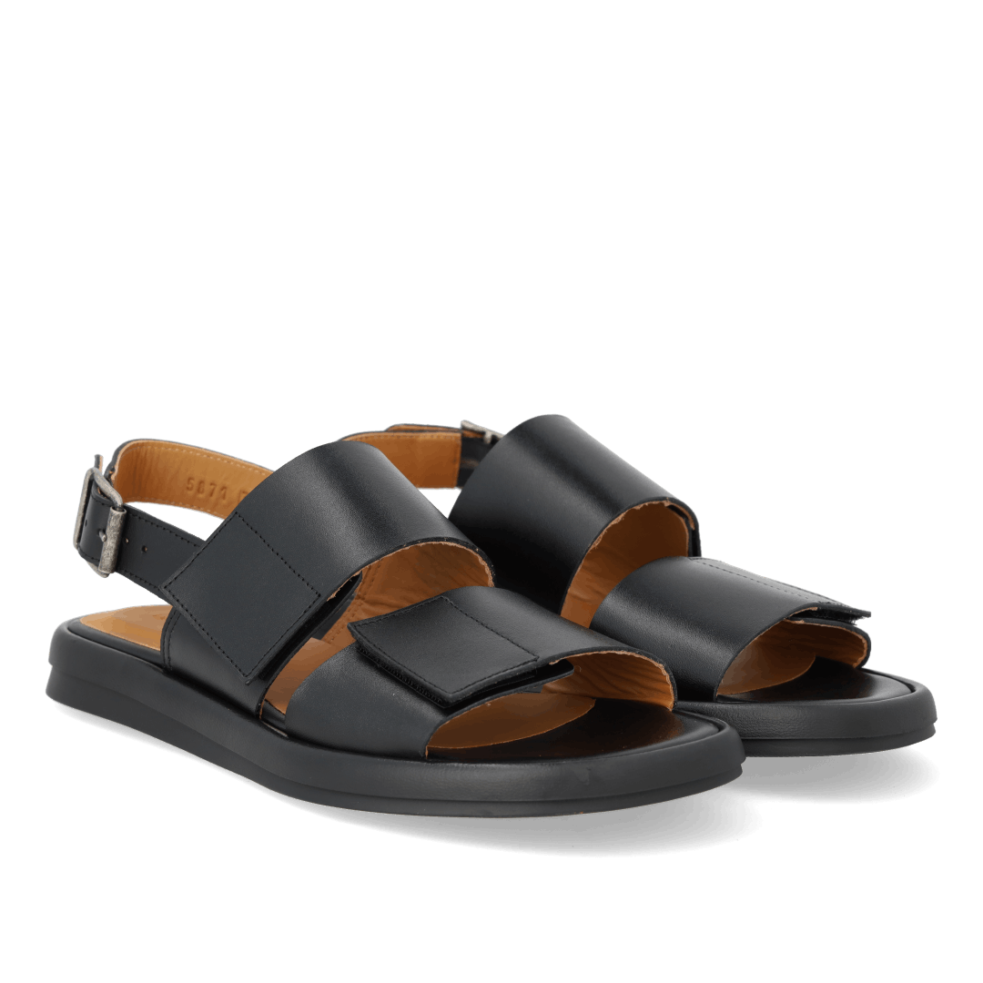 Stylenavn: Sandal med spænde og velcro Stylenummer: 5871-101 Farve: Black 1785 Materiale: Skind Foer: Skindfoer Pasform: Normal fit.