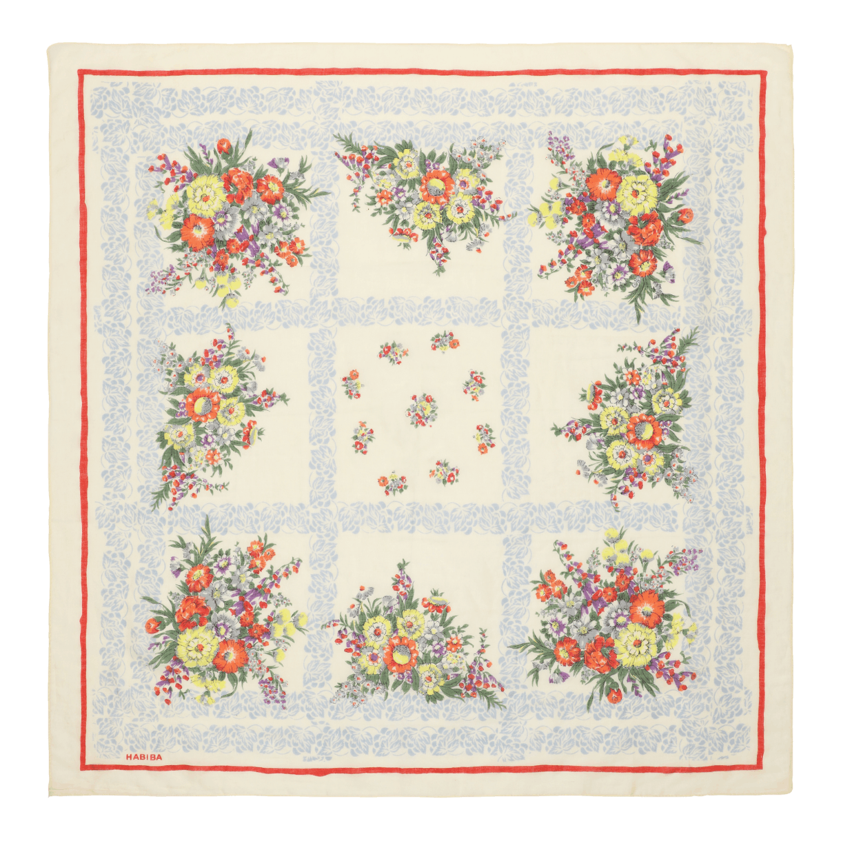 Stylenavn: Bouquet Scarf Stylenummer: SF1317 Farve: Vanilla Materiale: 100% økologisk bomuld Størrelse: 80 x 80 cm. Vaskeanvisning: Skånevask max 30°